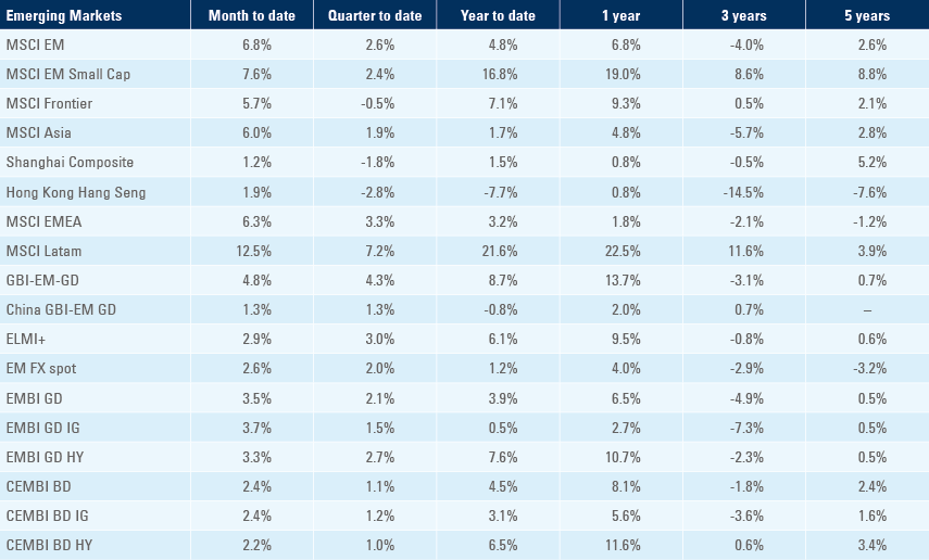 According to Bloomberg News, the People’s Bank of China (PBoC) is planning to inject RMB 1tn of low-cost financing to increase support to households for home purchases. This is intended to target China’s urban village and affordable housing schemes.3 In other economic news, aggregate financing slowed to RMB 1.85tn in October after RMB 4.13tn in September, marginally below consensus. New loans softened to RMB 738bn in October from RMB 2,310bn in September, slightly ahead of expectations. Despite the decline, aggregate finance was at the highest level for the month of October since 2017. Industrial production grew 4.6% yoy in October, 10bps higher than in September. Retail sales rose by 7.6% yoy in October, ahead of the 5.5% yoy growth in September and 60bps higher than consensus estimates. Residential property sales declined 3.7% yoy in October, from a 3.2% yoy decline in the month prior. FDI declined by 9.4% yoy on the January to October period, down from 8.4% yoy in the month prior.